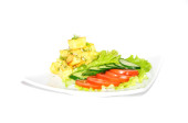 Sałatka z kukurydzy, kapusta pekińska, jajko, szynka, papryka i majonez