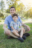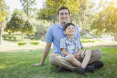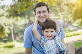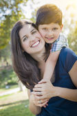 atrakcyjny mieszanej rasy matka i syn uścisk w parku
