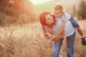 atrakcyjny mieszanej rasy matka i syn uścisk w parku
