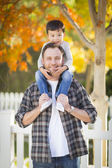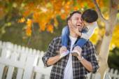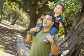 Ojciec i syn, park portret przystojny mieszanej rasy