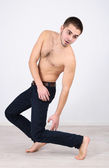 kopa człowiek zdecydowany skok trening przed walką