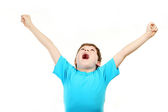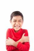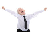 mały chłopiec w jednolite gotowy do szkoły ręce się