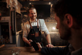 Zdjęcie "przystojny mężczyzna kawiarnia właściciel stojąc radośnie w jego kawiarnia." może być wykorzystywane do celów osobistych i komercyjnych zgodnie z warunkami zakupionej licencji Royalty-free. Obraz jest dostępny do pobrania w jakości wysokiej rozdzielczości do 5760x3840.