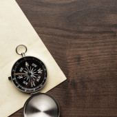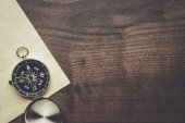 Stary papier, liny i model klasyczny łodzi na tle drewna