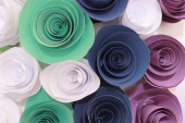 Róża różowy papier i niektóre inne niebieski na białym tle na białym tle
