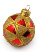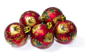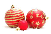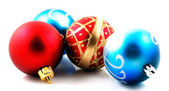 trzy świąteczne kule, czerwony i niebieski. na białym tle na białym tle ze ścieżką przycinającą.