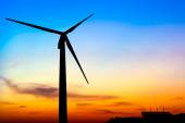 sylwetka turbin wiatrowych na kolorowy zachód słońca
