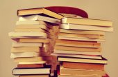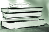 książki i okulary w starej walizki, z efektem retro