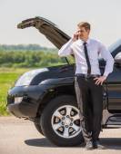 Zdjęcie "młody człowiek obok rozbił samochód na telefon" może być wykorzystywane do celów osobistych i komercyjnych zgodnie z warunkami zakupionej licencji Royalty-free. Obraz jest dostępny do pobrania w jakości wysokiej rozdzielczości do 5760x3840.