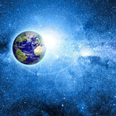 wschód słońca nad planety i satelitów w przestrzeni