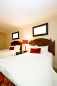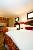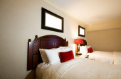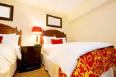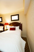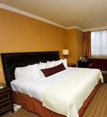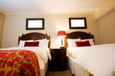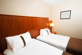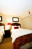 Podwójne łóżko w nowoczesnym pokoju wewnętrznym