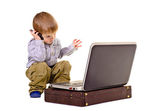 Zdjęcie "ładny mały chłopiec siedzi z laptopa" może być wykorzystywane do celów osobistych i komercyjnych zgodnie z warunkami zakupionej licencji Royalty-free. Obraz jest dostępny do pobrania w jakości wysokiej rozdzielczości do 5760x3840.
