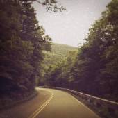 niektóre prędkości motocyklistów, jazda w dół drogi utwardzonej Góra.