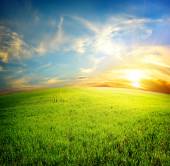 pole trawy i zachody słońca