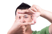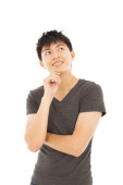 młody człowiek myśli lub wątpliwości na białym tle