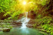 wodospad w głębokim lesie