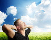 Zdjęcie "Młody człowiek odpręża się pod letnim słońcem" może być wykorzystywane do celów osobistych i komercyjnych zgodnie z warunkami zakupionej licencji Royalty-free. Obraz jest dostępny do pobrania w jakości wysokiej rozdzielczości do 5760x3840.
