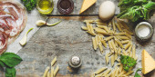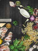widok z góry na składniki makaronu z hamonem