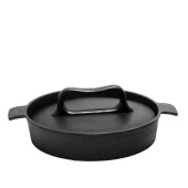 Czarny patelnia naleśniki izolowane na białym tle