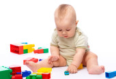 mały chłopiec z budynek cegieł