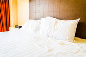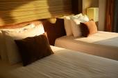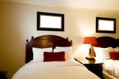 Podwójne łóżko w nowoczesnym pokoju wewnętrznym