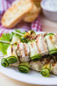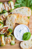 kebab z kurczaka z grilla, szaszłyk na szaszłyki z cukinią walcowane,