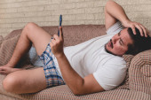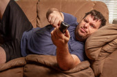 Bezproduktywny i bardzo leniwy człowiek z frytkami na brzuchu i przez telefon cały dzień. Nieambitny i nietaktowny