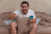 Zdjęcie "Bezproduktywny i bardzo leniwy człowiek z frytkami na brzuchu i przez telefon cały dzień. Nieambitny i nietaktowny" może być wykorzystywane do celów osobistych i komercyjnych zgodnie z warunkami zakupionej licencji Royalty-free. Obraz jest dostępny do pobrania w jakości wysokiej rozdzielczości do 5760x3840.
