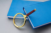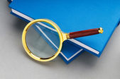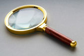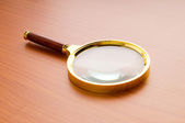 szkło powiększające z drewnianym uchwytem na płaskiej powierzchni