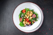 Zdjęcie "Zieloni mieszają się z pomidorami i serem" może być wykorzystywane do celów osobistych i komercyjnych zgodnie z warunkami zakupionej licencji Royalty-free. Obraz jest dostępny do pobrania w jakości wysokiej rozdzielczości do 5760x3840.