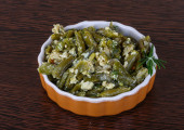 Indyjski capsicum masala sabji. Kostka papryki w plasterkach przyprawy. Shimla mirch z cebulą curry