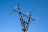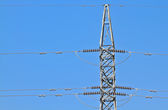linii energetycznych i elektrycznych pylon przeciw błękitne niebo jasne.