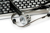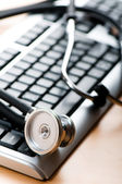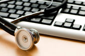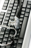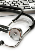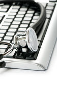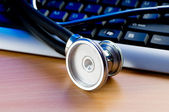 stetoskop i klawiatury ilustrujące pojęcie bezpieczeństwa cyfrowy