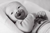 mały nowonarodzony chłopiec z dużym niebieskim manekinem