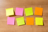 Wiele przypomnień na drewnianym tle