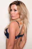 piękne DNA blond kobieta w jasny niebieski bielizny
