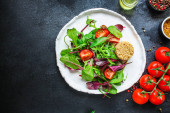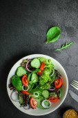Zdjęcie "sałatka z ziołami wymieszać cebulę, ogórki i pomidory" może być wykorzystywane do celów osobistych i komercyjnych zgodnie z warunkami zakupionej licencji Royalty-free. Obraz jest dostępny do pobrania w jakości wysokiej rozdzielczości do 5760x3840.