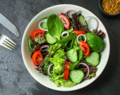 sałatka z ziołami wymieszać cebulę, ogórki i pomidory