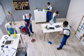 Zdjęcie "Multietniczne środki czyszczące myjące podłogę razem w biurze " może być wykorzystywane do celów osobistych i komercyjnych zgodnie z warunkami zakupionej licencji Royalty-free. Obraz jest dostępny do pobrania w jakości wysokiej rozdzielczości do 5760x3840.