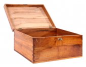 drewniane pudełko retro (trumny) z części metalowych na biały.