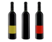 zestaw butelek Czerwonego i białego wina i szampana na białym tle