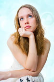 blondynka leżąc na łóżku i dzwoniąc