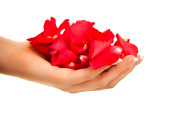piękne kaukaski kobieta z czerwonych róż na na białym tle