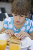 dorable poważną dziewczyną siedem lat napój pomarańczowy sok
