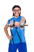 Zdjęcie "zabawny facet z dumbbels" może być wykorzystywane do celów osobistych i komercyjnych zgodnie z warunkami zakupionej licencji Royalty-free. Obraz jest dostępny do pobrania w jakości wysokiej rozdzielczości do 5760x3840.