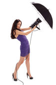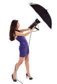 Młoda piękna kobieta z czarny parasol piękny portret
