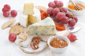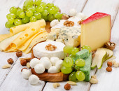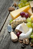 asortyment sery świeże i winogron na tle drewniane
