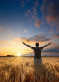 szczęśliwy człowiek młody odpoczynek na polu pszenicy