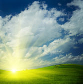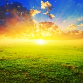 pole trawy i zachody słońca