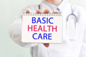 Ręce lekarza w niebieskich rękawiczkach trzymające kartkę papieru z tekstem ACA. aca - skrót od przystępnej cenowo ustawy o opiece zdrowotnej, pojęcie medyczne.